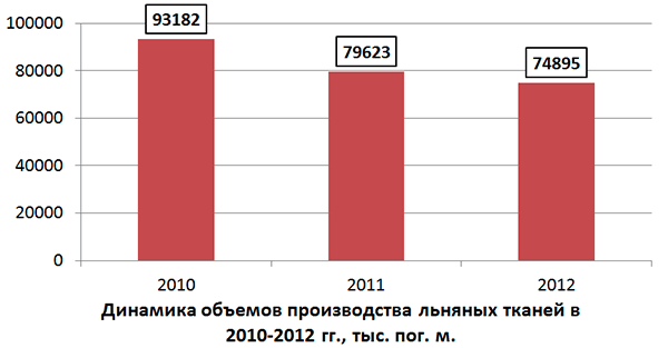В результате увеличения посевных площадей льна и переоснащения льнокомбинатов, несмотря на отрицательную динамику объема льняного производства, в 2012 году темпы спада производства снизились на 9 процентных пунктов — до –6%.