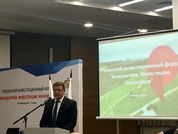 29 ноября АО «Корпорация развития Рязанской области» и Правительство Рязанской области провели инвестиционный форум: «Инициатива Инвестиции Инновации» с участием Любимова Николая Викторовича - Губернатора Рязанской области, который открыл пленарное заседание с докладом о перспективах развития Рязанской области. В своем докладе губернатор поделился планами по увеличению в 3 раза инвестиций в регион и создания точек роста в виде государственного индустриального парка, ТОР по программе моногородов, центра кластерного развития, регионального фонда развития промышленности, инжиниринговый центр и пр.