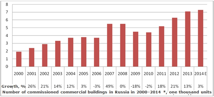 In 2014 commercial real estate commissioning slowed down the growth as investment activity considerably decreased that is in its turn was connected with slightly complicated geopolitical situation in the country.