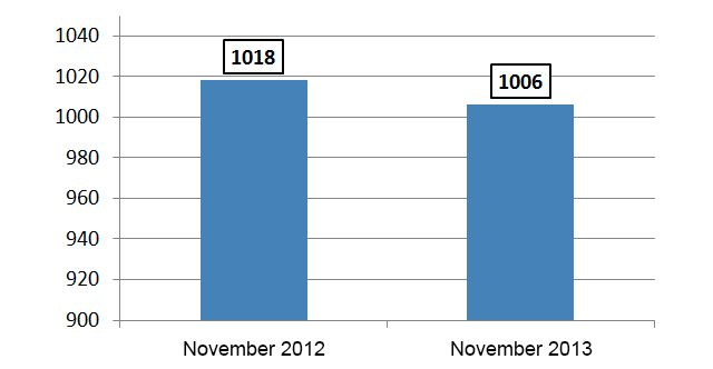Production volumes of milk of cattle in November 2012 - November 2013, ths. t