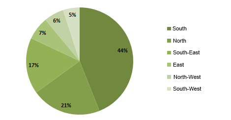 By results of 3 quarters of 2013 the largest volume of warehousing property in Moscow Region was deployed in the southern direction – 44% of the total rate, which amounted to about 230 ths. sq. m. The northern direction is on the second place. The volume of deployment of warehousing property in the north of Moscow Region amounted to 21% or 110 ths. sq. m.